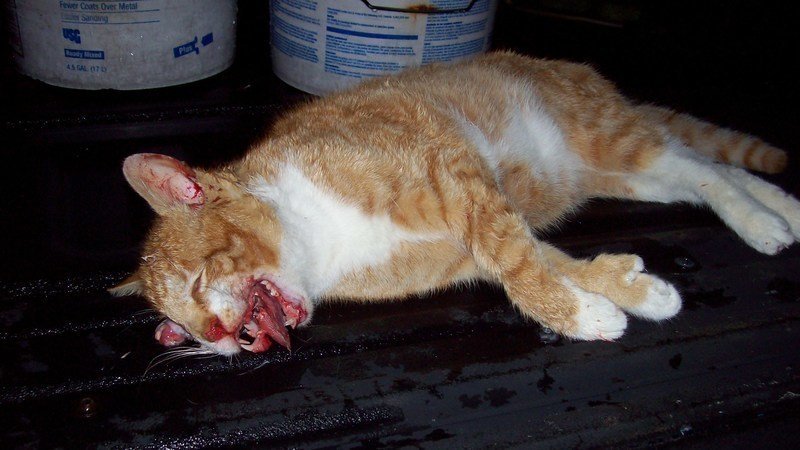 I would like to know how we got duped into spending our life's savings rescuing these cats while all these Animal Advocate Groups did nothing?I would like to know how they all pay themselves huge salaries collecting money then don't spend any of it saving cats lives?Not one animal advocate group has come to these cats rescue and 59 of them died.The remainder are now starving and suffering from abuse and still no response from the ANIMAL ADVOCATE SYSTEM.Here is what they look like after the cat killers get thru with them!This cat wasn't worth their time saving?