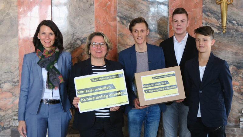 ziemlich erschöpft, aber noch viel motivierter als vorher, kommen wir gerade von der Petitionsübergabe mit 45-minütigem Gespräch über Kohleausstieg und Klimaziel 2020 mit Bundesumweltministerin Svenja Schulze zurück. Wir wir haben gute, aber auch schlechte Nachrichten im Gepäck!