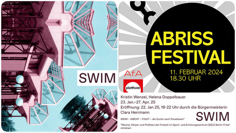 am morgigen Mittwoch, den 22.01.2025, findet von 18-22 Uhr die Eröffnung der Ausstellung “SWIM” durch Bezirksbürgermeisterin Clara Herrmann statt. Sie ist Teil der Ausstellungsreihe “SWIM – SWEAT – FIGHT - die Suche nach Paradiesen * Räume, Körper und Politiken der Freizeit im Sport- und Erholungszentrum (SEZ) Berlin-Friedrichshain”.