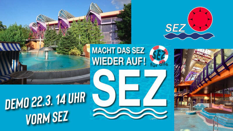 Morgen, Samstag, den 22.03.2025, laden wir als Bürgerinitiative "SEZ für alle!" ab 14 Uhr unter dem Motto "Macht das SEZ wieder auf!" zur 44. Geburtstags-SportKultur-Fest: Demo! ein.