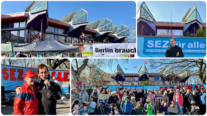 am Samstag, den 22.03.2025, haben wir als Bürgerinitiative "SEZ für alle!" unter dem Motto „Macht das SEZ wieder auf!“ zur „44. Geburtstags-SportKultur-Fest: Demo!“ vor das SEZ eingeladen.