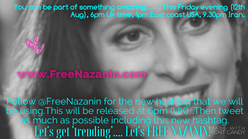 In preparation, we have created a new hashtag which will be released via social media (@FreeNazanin on Twitter) at 6PM UK time on Friday August 12th.