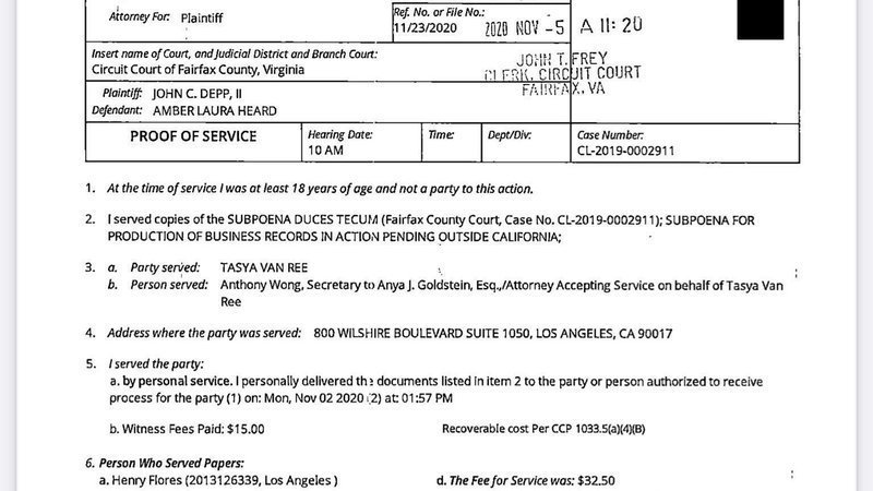 Tasya Van Ree, Raquel (Rocky) Pennington and iO Tillet-wright have all formally been served with Subpoenas. You can see proof of service HERE, HERE, and HERE. And it bears note that the plaintiff issued these subpoenas. Johnny Depp's lawyers, not Amber Heard's.