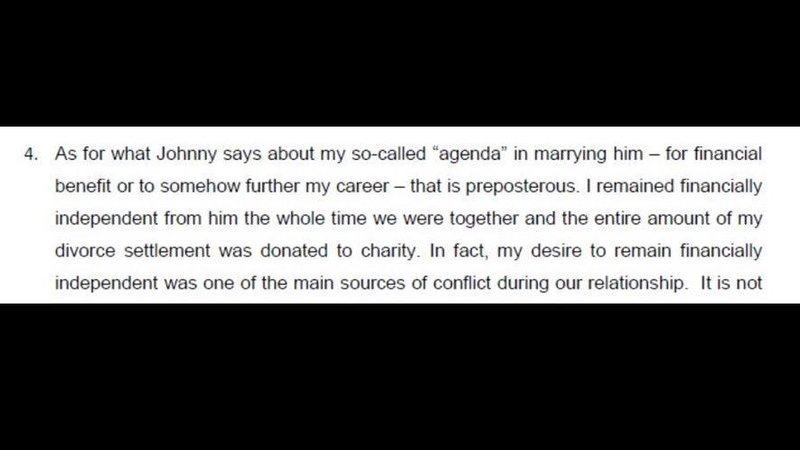 "However, Amber has been delayed in that goal because Mr. Depp filed a lawsuit against her, and consequently, she has been forced to spend millions of dollars defending Mr. Depp's false accusations against her."