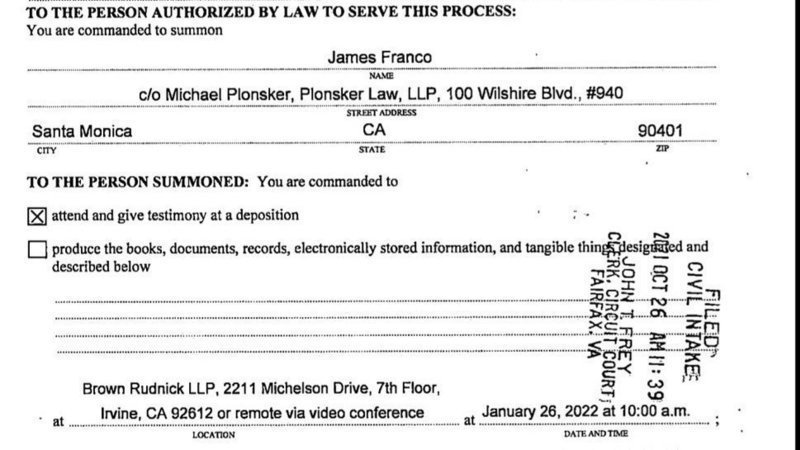 Just a reminder that James Franco is set to sit for his deposition on January 26th 2022 in Johnny Depp's $50 million Dollar lawsuit against his ex-wife Amber Heard.