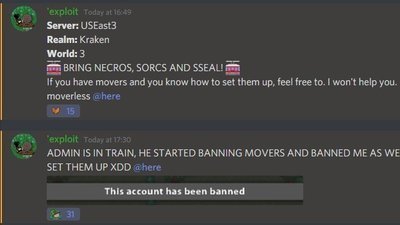 Admin Valsined joined the realm, banned people who placed movers, but not only them.