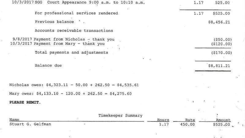 I received this invoice shortly after Nick was sent to jail. This court date had NOTHING to do with the girls, it was solely in regards to Nick's inability to pay and for that he was billed $525.00 on top of the $1500 it cost to bail him out. This is just a sickening display of greed while abusing a position of authority.