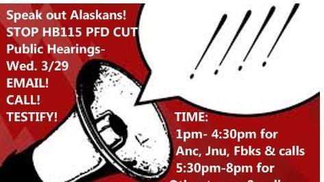 Petition updateDEFEND Our PFD and Fund NOWSPEAK OUT TODAY 3/29 PUBLIC HEARINGS. VOTE NO ON HB115 TO CUT PFD/INCOME TAX