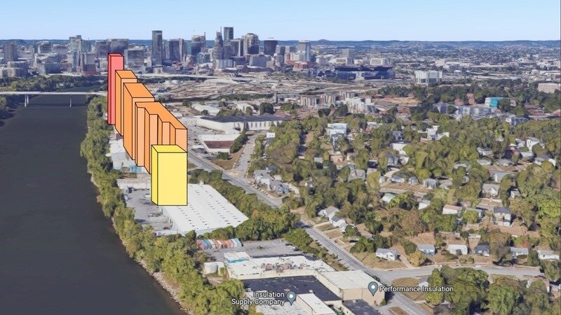 This is the first time such a project has been proposed for East Nashville community and sets a dangerous precedent. Future developers will cite this departure from a logical, gradual cityscape transition as the first step in extending the downtown urban Gulch farther into East Nashville. Metro Planning has effectively traded 8-to-12 stories over the current 7-story limit for a small amount of green space and limited river access. This inequity is a bad deal for the surrounding community. We would never make this trade under the proposed circumstances.