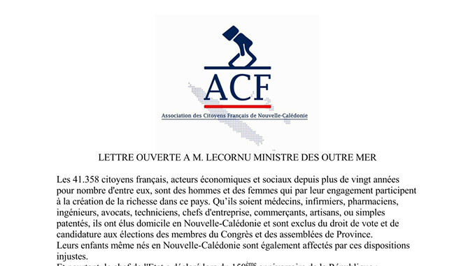 Association des Citoyens Français de Nouvelle-Calédonie (ACF NC), le 25 octobre 2020.