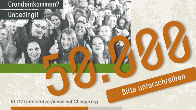 Aggiornamento sulla petizioneDeine Stimme für ein bedingungsloses Grundeinkommen!+++ Wahnsinn!!! Mehr als 50.000 Unterschriften in 2 Wochen