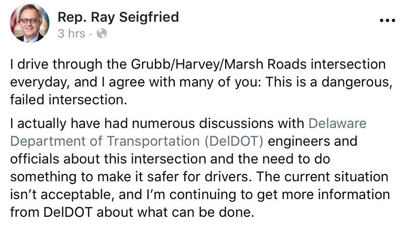 Mise à jour sur la pétitionImprove left turn traffic flow at the Marsh, Harvey, Grubb Road intersection.Rep. Ray Seigfried posts about dangerous intersection