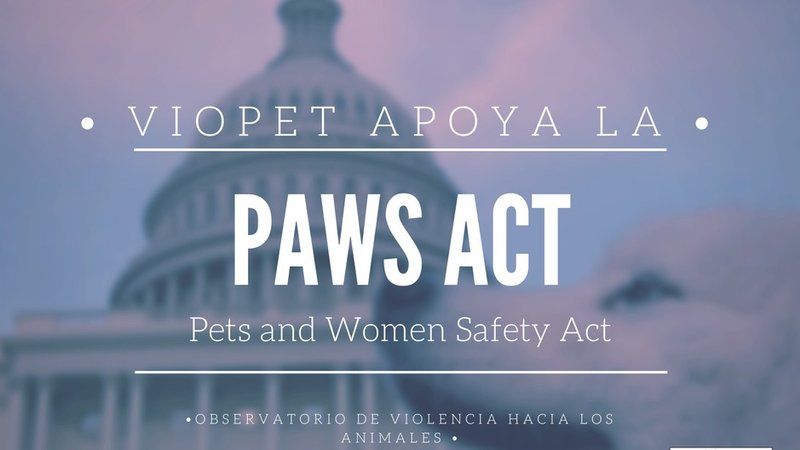 Los Congresistas Mimi Walters (R-CA), Katherine Clark (D-MA), Ileana Ros-Lehtinen (R-FL), Rick Nolan (D-MN), Jeff Denham (R-CA), Steve Cohen (D-TN), junto con otros 176 reintrodujeron la propuesta de ley PAWS (Pet & Women Safety Act) bicameral y bipartita para proteger a las víctimas de violencia de pareja y de acoso del trauma emocional y psicológico causado por la violencia hacia sus animales. Múltiples estudios han demostrado que en el contexto de la violencia de pareja a menudo se manipula o intimida a las víctimas amenazando o perjudicando a sus animales, pero según la Sociedad Americana para la Prevención de la Crueldad a los Animales (ASPCA), sólo el tres por ciento de las casas de acogida en todo el país aceptan animales. En España tres municipios se han comprometido a permitir establecer planes de seguridad para alojar al animal de la víctima (bien en el mismo recurso o en uno aparte): Zaragoza, Sant Cugat y Arrecife.
