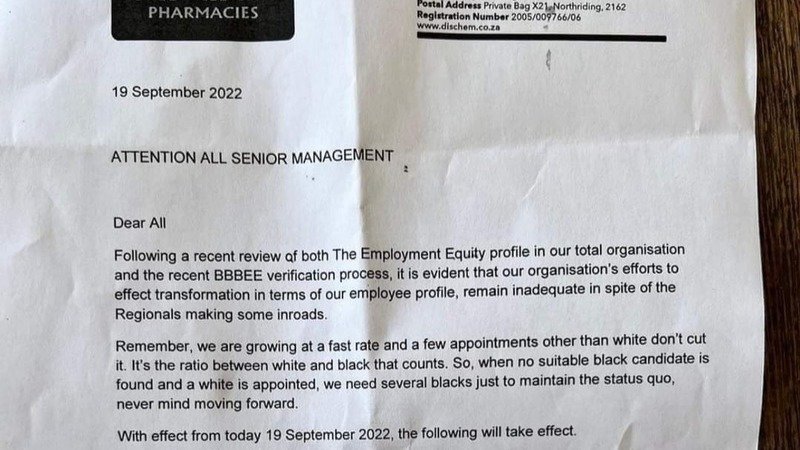 Dischem Pharmacy launched an awful policy whereas they refuse to Hire white people in the goal of Maximizing Profits. We will Boycott them until Equality is reached.