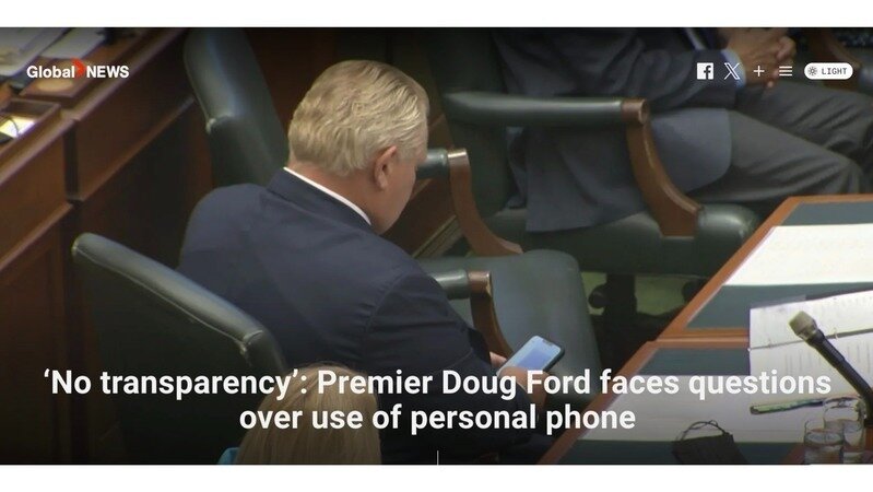 It's been one week since the Auditor General's scathing report of the corruption at the centre of Doug Ford's sale of greenbelt lands. Now we're discovering that Ford uses a private cell phone to conduct public business and refuses to share records of his phone calls. Adding to matters, Ford's secrecy around development plans for Ontario Place also points potentially to more backroom deals with respect to OUR public lands.