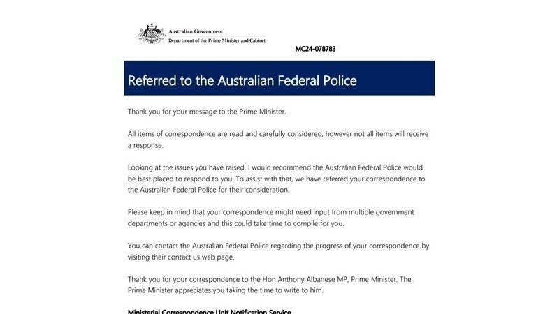 Looking at the issues you have raised, I would recommend the Australian Federal Police would be best placed to respond to you. To assist with that, we have referred your correspondence to the Australian Federal Police for their consideration.