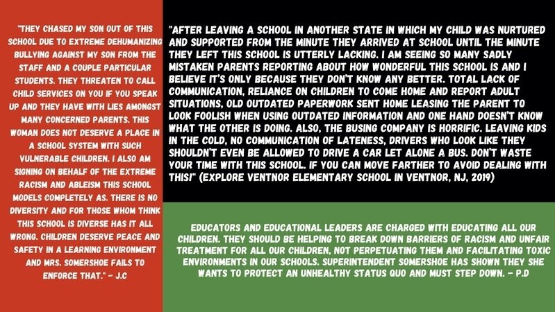 To better understand the overall culture of the Ventnor Public School district, I suggest reviewing the comment section of the petition and clicking on the links provided below to view comments left on other platforms. Here are a few shared experiences and concerns that have been raised:
