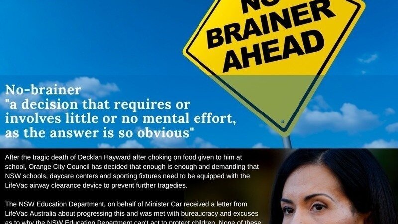 After the tragic death of Decklan Hayward after choking on food given to him at school, Orange City Council has decided that enough is enough and is demanding that NSW schools, daycare centers, and sporting fixtures need to be equipped with the LifeVac airway clearance device to prevent further tragedies.