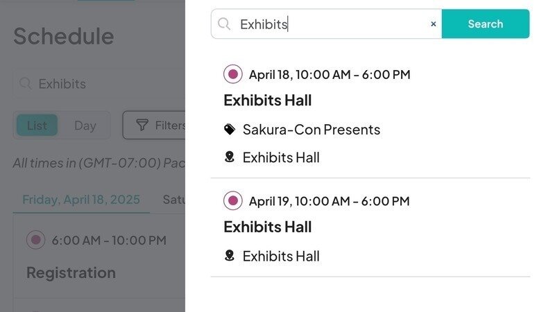 The alternative to this mess is simple: place the names, hours, and locations of the Artist Alley and Exhibit Hall in every surface that a user would search. The cost of inaction will result in attendees arriving at a hall after it is already closed. In a poll of 52 people asking “Without looking, what time would you assume Artist Alley closes on Saturday at Sakura-Con 2025?” with multiple-choice options for 5pm, 6pm, 7pm, and 8pm, 35% of respondents selected an option that would have been after Artist Alley closed at 6pm. Anyone who would have wanted to test their assumption would have needed to jump through the unnecessary hurdles of searching for the hours in the schedule because they are not surfaced at the top level. All of these poor experiences are completely avoidable.