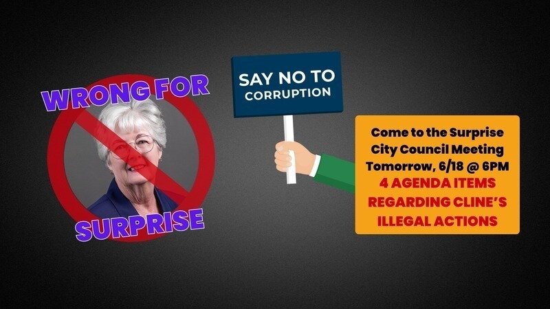 38) Discussion and action to discipline Councilmember Aly Cline for violating Arizona State Law, Surprise City Code, and the Surprise City Council Policies and Procedures.