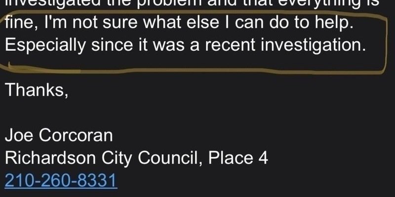 Petition updateDemand the City of Richardson Be Held Responsible for Flooding Our Home with Raw Sewage.The entire email from Joe