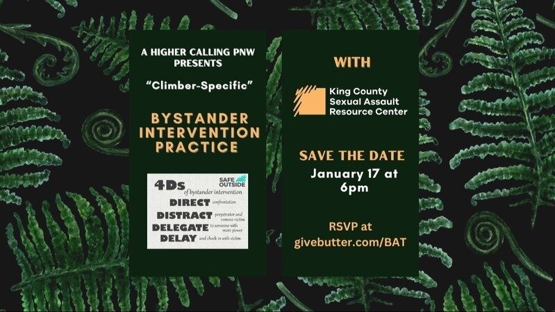 Good news- we've secured a date for next month's Bystander Awareness Training! We will be focusing on the Intervention piece of the Safe Outside Curriculum by practicing the 4 D's of Bystander Intervention. These are 'Direct, Distract, Delegate, and Delay'. We'll practice using some examples listed in the petition as well as from my library of complaint forms. Be sure to RSVP if you're in the Seattle area and want to receive guidance from the wonderful Prevention Team at King County Sexual Assault Resource Center! Givebutter.com/BAT