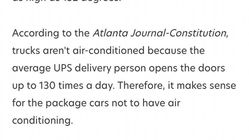 Over and over you see it everywhere. UPS can’t Air Condition the Package Car. They have videos articles etc with the same old lies. This petition is calling for the cargo area not the front cab where drivers sit. Don’t be misled from their propaganda & lies. The truth is UPS once had AC in the package vehicles, they removed it because they thought drivers would be too comfortable. Because safety doesn’t matter when the driver is suffering from heat stroke in the Cargo area. The AC has proven to work before in UPS package trucks and other delivery services. Manufacturers of AC units specifically made for these vehicles. It doesn’t affect gas, has nothing to do with turning the engine on and off or how many times the bulk head doors are open. It’s battery powered and installed in the cargo roof. How many drivers, how many lives before UPS Carol Tome before you make this right?
