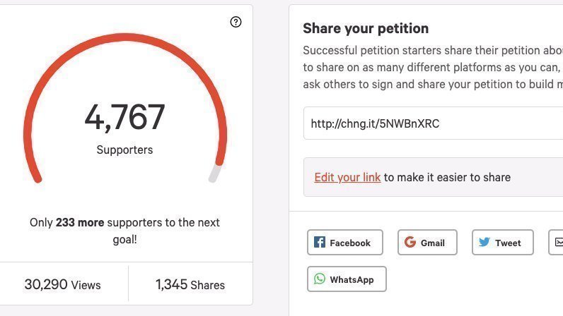 This is a screen shot from the dashboard this petition has been viewed 30,000 times and only 4,767.