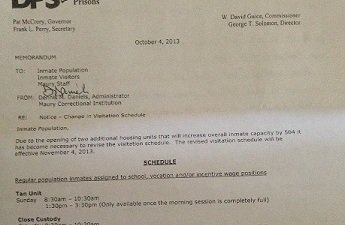 Dennis M. Daniels, Administrator at Maury Correctional Institute: Revise the visitation schedule rumor has is STILL going into effect 12-1-13