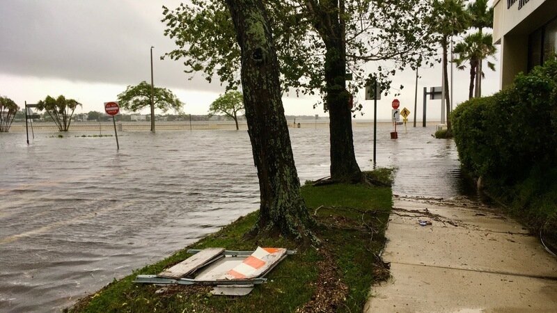 The photograph is flooding at Magnolia, Swann and Bayshore - from just Tropical Storm Debby in August 2024. The same site saw much higher flooding from Hurricanes Helene and Milton in the same year. This intersection is where the Palm Beach developer is proposing a hotel complex that would triple density.