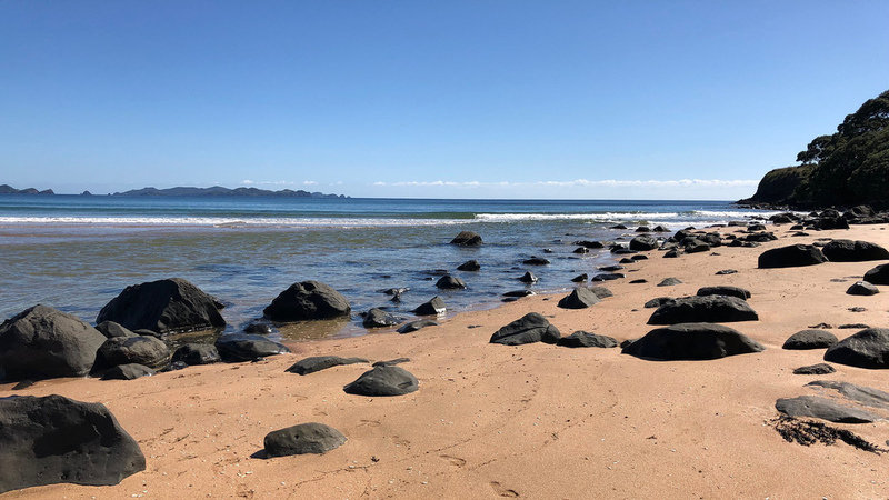 The Taronui lagoon is a 5 minute walk from the proposed car park. To the left is rocky bay. Surfers can rock hop for 20 minutes or so to get to Eliot's, a treasure for those who are after waves, clear water and golden sand. This pic shows Eliots on a calm summer morning.