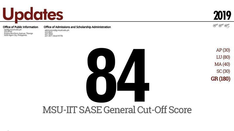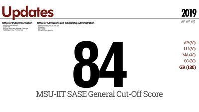 MSU-IIT has released the cut-off score and it's 84. There is a huge number of students that took the SASE Exam. Students that are determined to pass. Not many went too far to pass and it's tragic. Some students are already expecting for the waiting list. The cut-off score last year was 67, how come in this school year it's higher than the last? Signing this will change things for everyone.