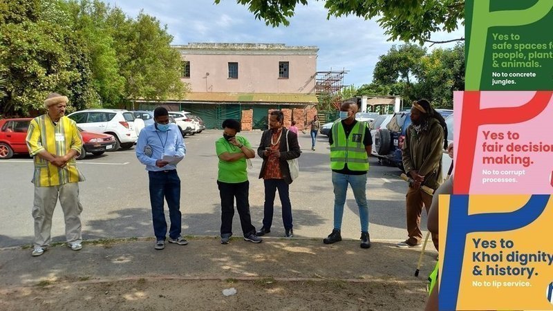 Yesterday, the South African Heritage Resources Authority (SAHRA) visited the Two Rivers Urban Park (TRUP) as part of their process of grading the site as a National Heritage Resource. SAHRA’s grading follows the February 2020 nomination by the the Goringhaicona Khoi Khoi Indigenous Traditional Council (GKKITC), Observatory Civic (OCA) and the Two Rivers Urban Park Association (TRUPA) to Heritage Western Cape (HWC) to grade the TRUP as a Provincial Heritage Resource. It is distressing that more than a year and a half has elapsed since the nomination was made to recognise the critical heritage importance of the entire area. During this time, the City and Provincial authorities approved the redevelopment of the River Club. As a 14.7 ha triangle of land at the junction of the Liesbeek and Black Rivers, the River Club site is a particularly significant part of the TRUP.