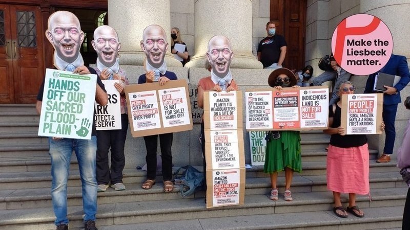 Protesters at the start of this morning’s session at the High Court made it clear that it’s time Amazon took responsibility for the threatened destruction of a sacred heritage site of substantial environmental sensitivity.