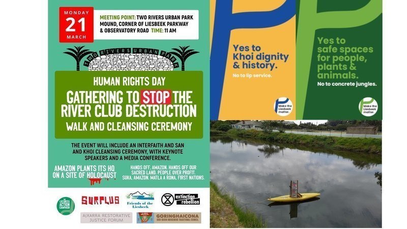 On Human Rights Day, Monday March 21st, we will be hosting an event to protect the Liesbeek River from destruction by the LLPT’s development in conjunction with Friends of the Liesbeek, Surplus, Extinction Rebellion, the A|Xarra Restorative Justice Forum and the Goringhiacona Khoi Khoin Indigenous Traditional Council.