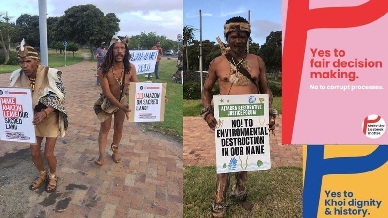 We believe the significance of this finding reaffirms the strength of our Constitutional Democracy. Government authorities are not above the law and cannot make decisions without public consultation processes that are meaningful, particularly where they impact permanently on the rights of indigenous people. The three protesting Khoi chiefs in the photo above are amongst many excluded by the LLPT in their sham First Nations report used to justify the development.
