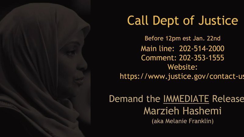 Petition updateFREE MARZIEH HASHEMI - American Citizen- JournalistCourt Hearing - Jan 22nd - CALL the Department of Justice