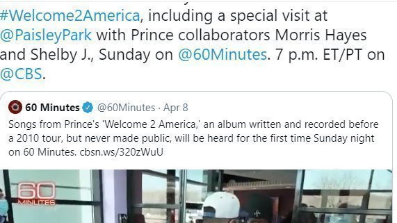 Tonight on CBS the story behind Welcome 2 America will be featured on CBS including a special visit to Paisley Park. I hope that this will make it even more clear as to why we need to push this petition to protect Paisley Park.