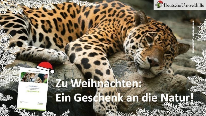 Liebe Unterstützer*innen! Wir haben in den letzten Tagen die 100.000 Unterschriften geknackt. Ganz herzlichen Dank an alle für die Unterstützung! Viele von euch haben uns in den letzten Monaten mit ihrer Stimme, ihrer Spende oder Jaguar-Patenschaft geholfen, uns für den Schutz von Jaguar und Co. einzusetzen. Ihr könnt noch mehr tun, um Südamerikas Wälder zu schützen, indem ihr euer Engagement mit euren Lieben teilt: Verschenkt doch in diesem Jahr eine Spende oder Jaguar-Patenschaft zu Weihnachten.