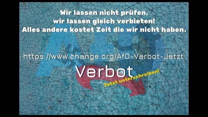 Würden alle gemeinsam hier unterschreiben, alle die immer wieder behaupten, sie hätten Angst das die AfD die Macht übernimmt, alle die mit einer Unterschrift lieber  eine unnötige Prüfung eines Verbots fordern anstatt das Verbot direkt , dann wäre die AfD längst verboten.... Ist aber nicht so...Angst ist eben kein guter Berater. Und Rückgrat haben und beweisen geht definitiv anders...