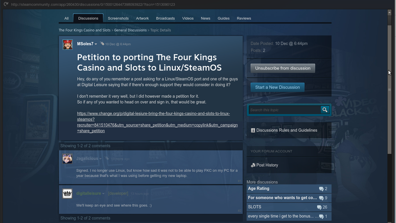 That means that we got their attention and that we would keep on working harder to gain enough support to bring The Four Kings Casino and Slots over to Linux/SteamOS.