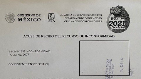 El día de hoy ingresamos el oficio de Recurso de Inconformidad para que el caso sea discutido en una se las sesiones de Comité Consultivo Delegacional de IMSS.