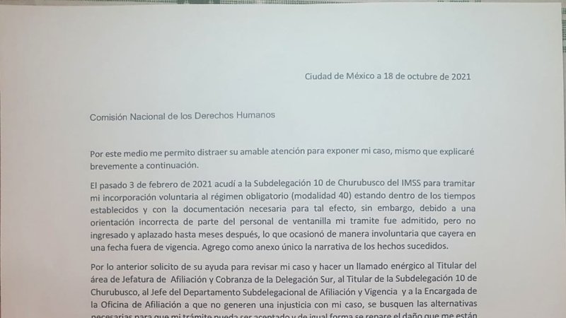 Continuamos exigiendo justicia al IMSS en el caso de la Sra. Paulina, en esta ocasión ya fue ingresada la petición el la CNDH para su atención y seguimiento.