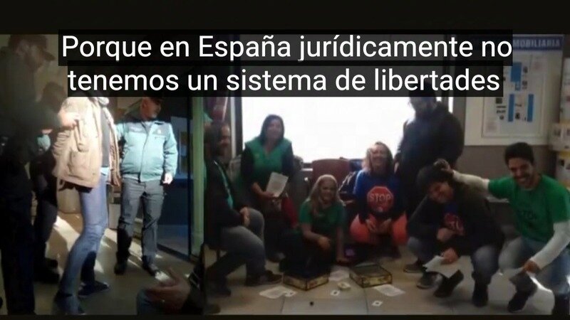 Todas las personas que participaron de aquellos hechos, ocurridos el 5 de diciembre de 2017, fueron desalojadas, detenidas y trasladadas a dependencias de la Guardia Civil, a la espera de órdenes que justificaran el motivo de la detención. Finalmente, la concentración espontánea de más de un centenar de personas frente al cuartel motivó su puesta en libertad. Hoy se enfrentan a una pena de prisión por el ejercicio de un derecho fundamental, de la mano de dos poderosos actores: la Fiscalía y la Banca.