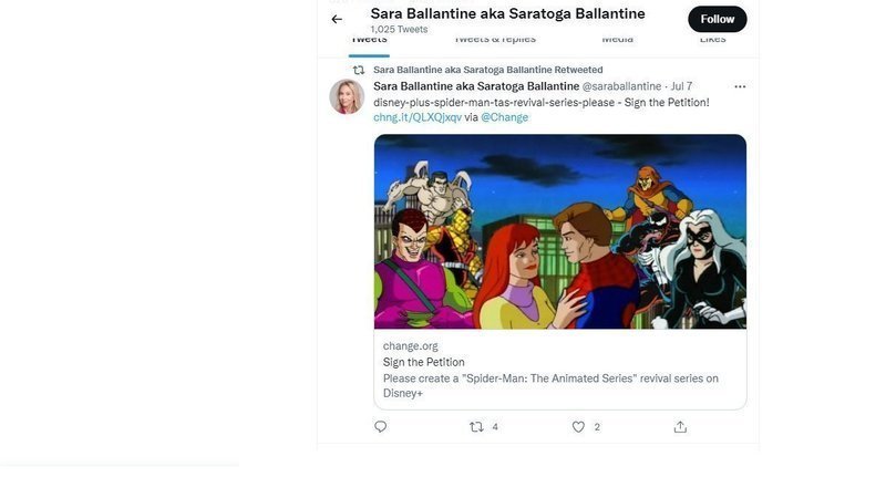 In other good news, voice actress Sara Ballantine (the voice of Mary Jane Watson) has been kind enough to share the link to this petition on Twitter and on Facebook a few days ago! I'd like to thank her very much for her continued support and for helping our petition get more signatures!