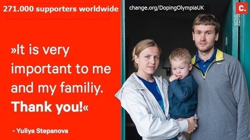 Allow me to address you with one more suggestion to make a difference. As many of you may know, the Stepanovs had to leave their home country, have to hide and have no support whatsoever from any of the sports organizations. As their work permits have not yet been issued, they depend on support from outside. Some of the great sports personalities of the world have come together and created a crowdfunding initiative that you can find under the following link: