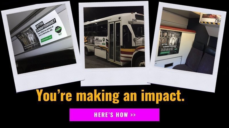 SURROUNDED: we're running bus and train ads in Beltsville, MD, to expose USDA's Kitten Slaughterhouse... in its OWN BACKYARD!