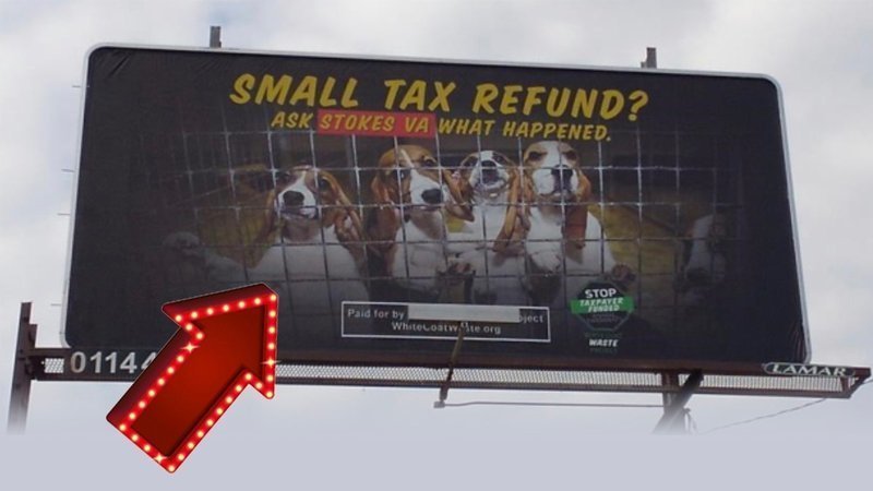So, we’re running this billboard during tax month... right in the dog lab’s own backyard!