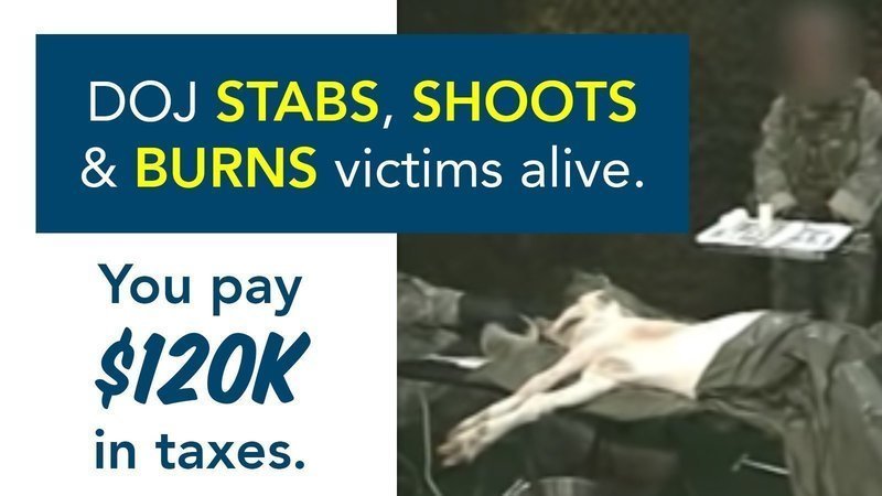 BREAKING: The Dept. of Justice (DOJ) just spent $120K of your tax money to buy pigs, goats, and maybe even dogs. They shoot, stab, dismember, and blow them up.
