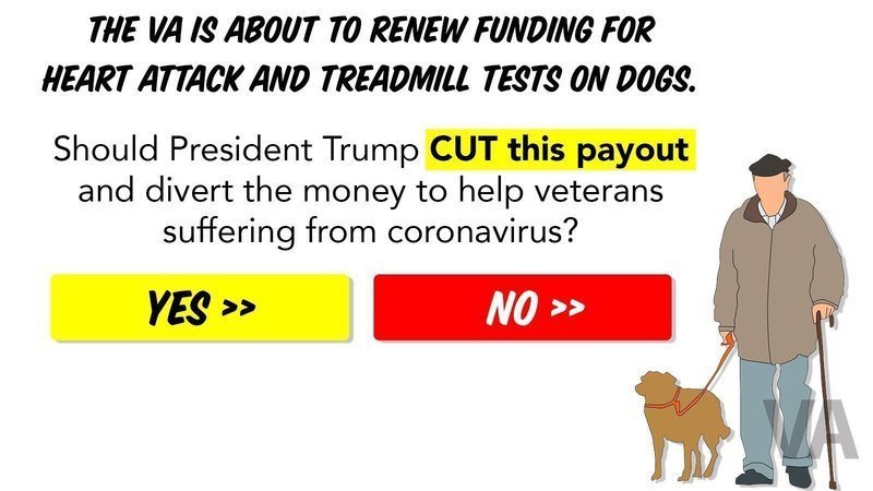 FLASH POLL: The VA is about to renew funding for heart attack and treadmill tests on dogs. Should President Trump cut this payout and divert the money to help veterans suffering from coronavirus?